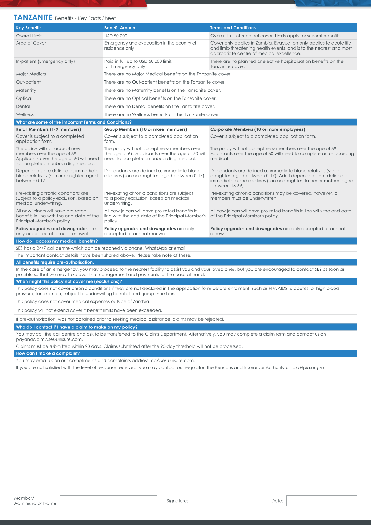 Tanzanite Health Plan Key Fact Sheet Signoff
